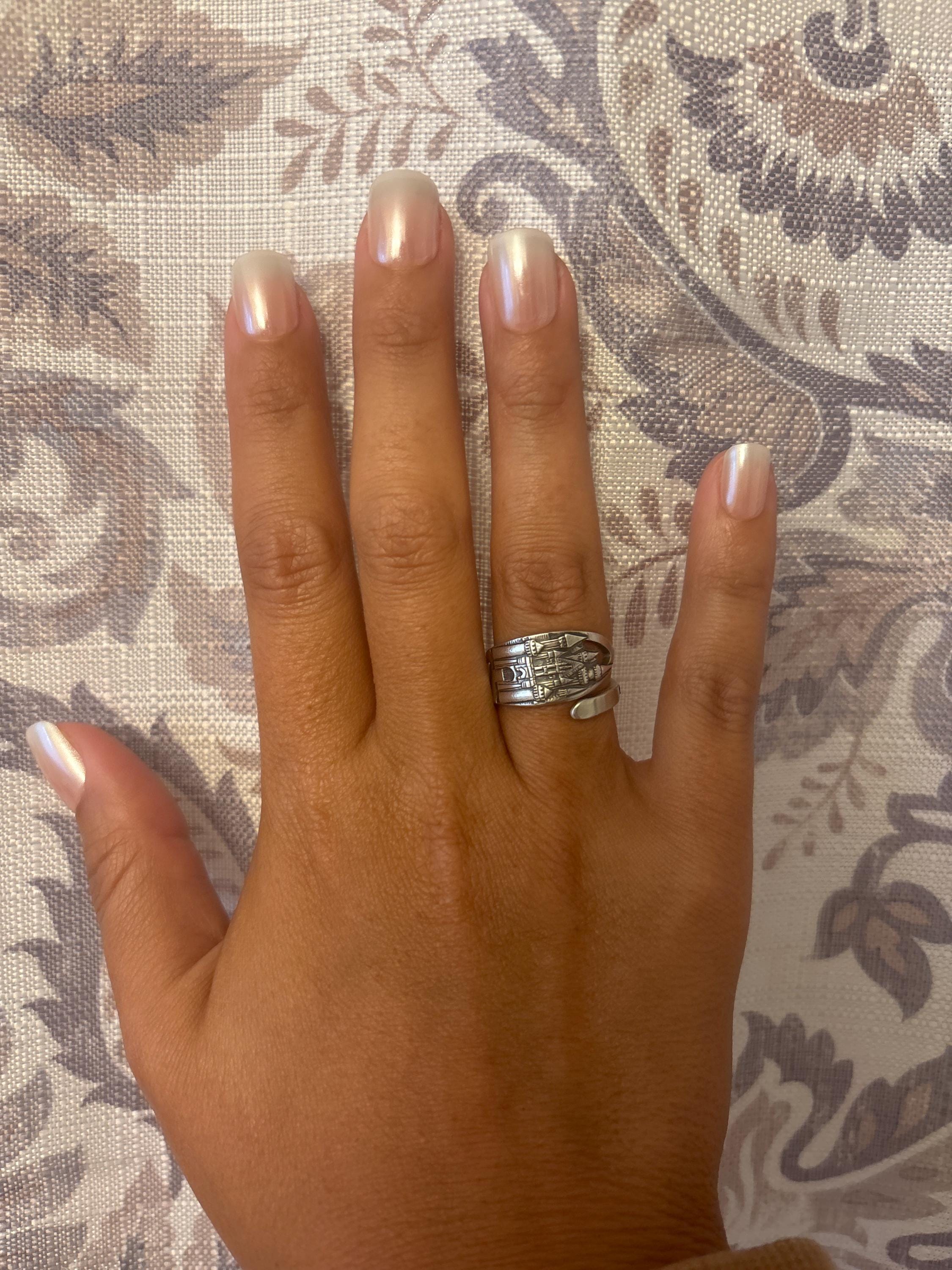 Crafted form a rare original Disney sterling spoon, we've created this lovely ring featuring the Disneyland castle in all it's detailed splendor! If you're a Disney aficionado, you know how hard these spoons can be to find! Perfect for the Disney fan in your life.