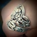 Spoon rings originated in 17th century England. In those days, flatware was highly prized as it was made from solid silver and high stylized and decorated in an heirloom manner. Popular lore explains that servants, unable to afford to buy 'proper' engagement rings would steal a flatware piece from their master's home. They would shape it into a ring and give it to their beloved for a marriage proposal. Thus, the earliest spoon rings served as symbols of love and commitment, in defiance of strict social and economic barriers.